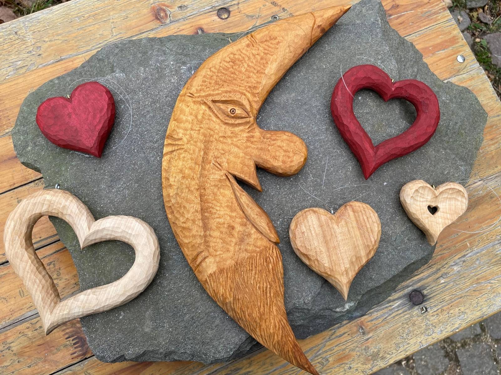 Handgemacht & einzigartig: Bäume, Schalen und Herzen aus Linde werden von Hand geschnitzt; Kugelschreiber, Mühlen, Ringe entstehen in der Werkstatt (Drechselarbeiten). Jedes Stück ist sorgsam fotografiert.