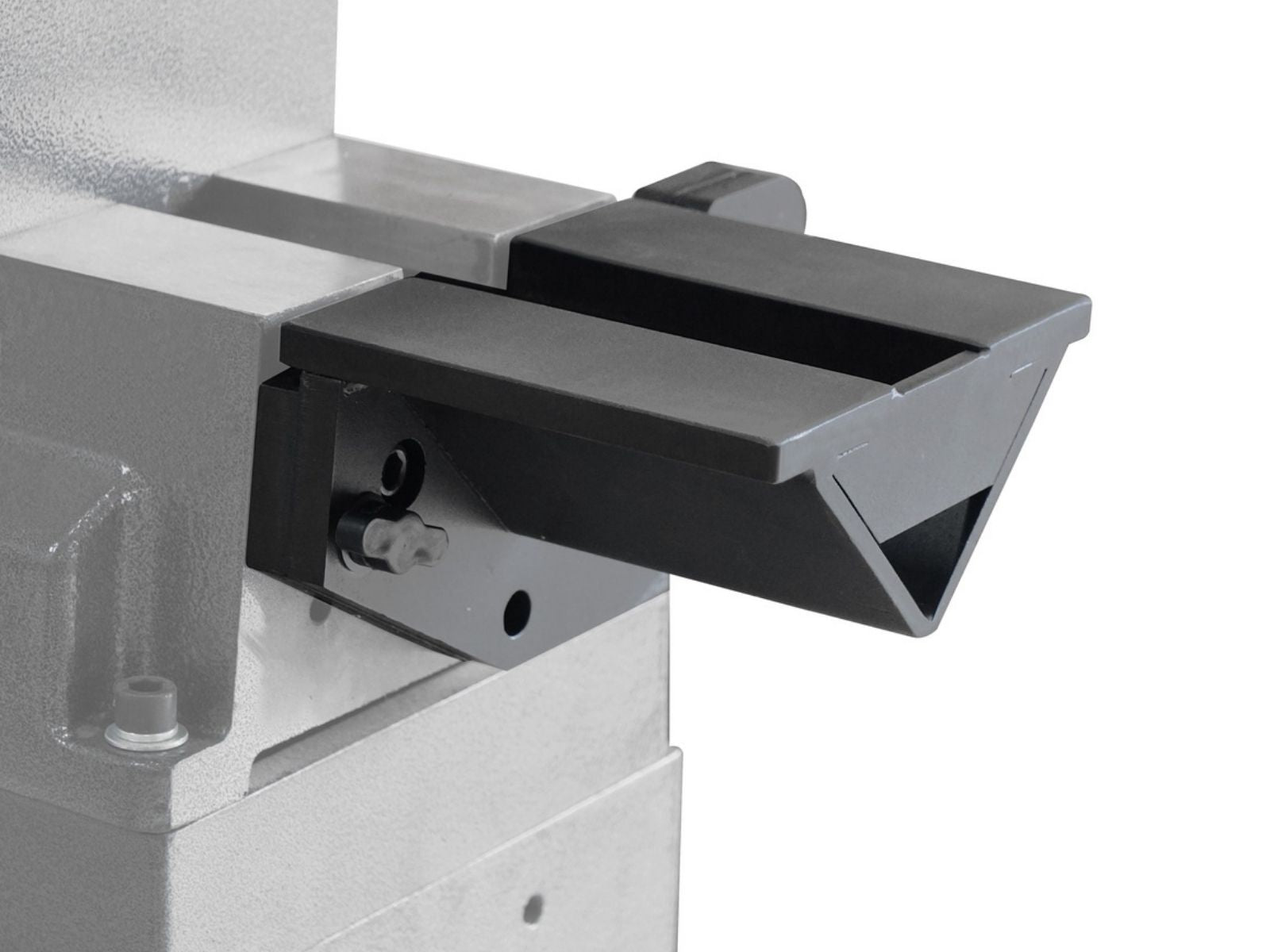 - Gehärtete Pinole mit Trapezgewinde: nimmt hohe Kräfte auf, läuft sauber und lässt sich schnell ein- und ausdrehen.