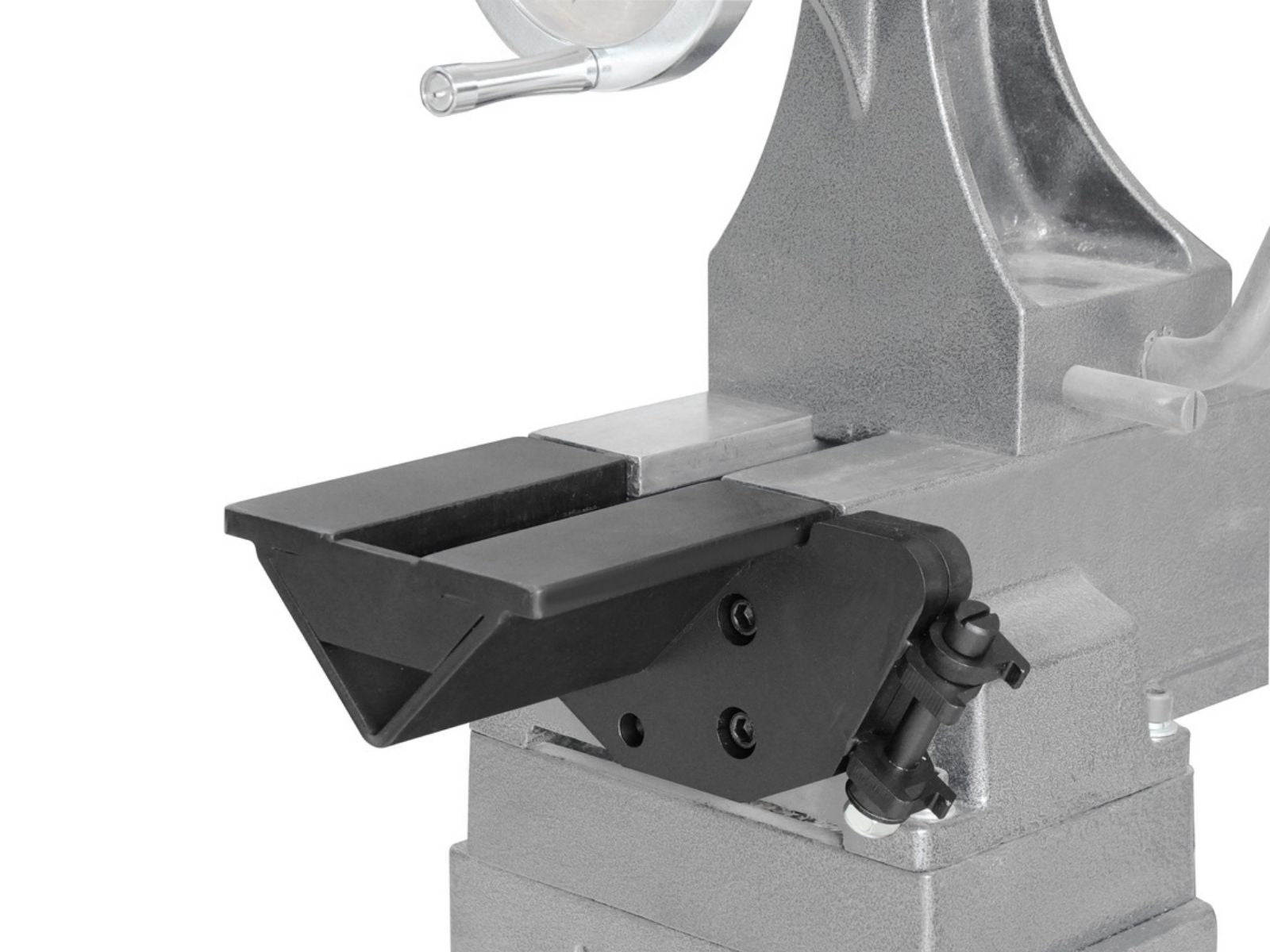 Wie bei allen CARP-Bänken wurde großer Wert auf Details gelegt: gehärtete Pinole mit Trapezgewinde, pulverbeschichtete Oberfläche und die bewährte CARP-Werkzeugauflage mit gehärteter Rundkante. Dazu kommt die M33-Spindel mit ASR-Ring, die verhindert, dass sich Planscheibe oder Spannfutter im Betrieb lösen.