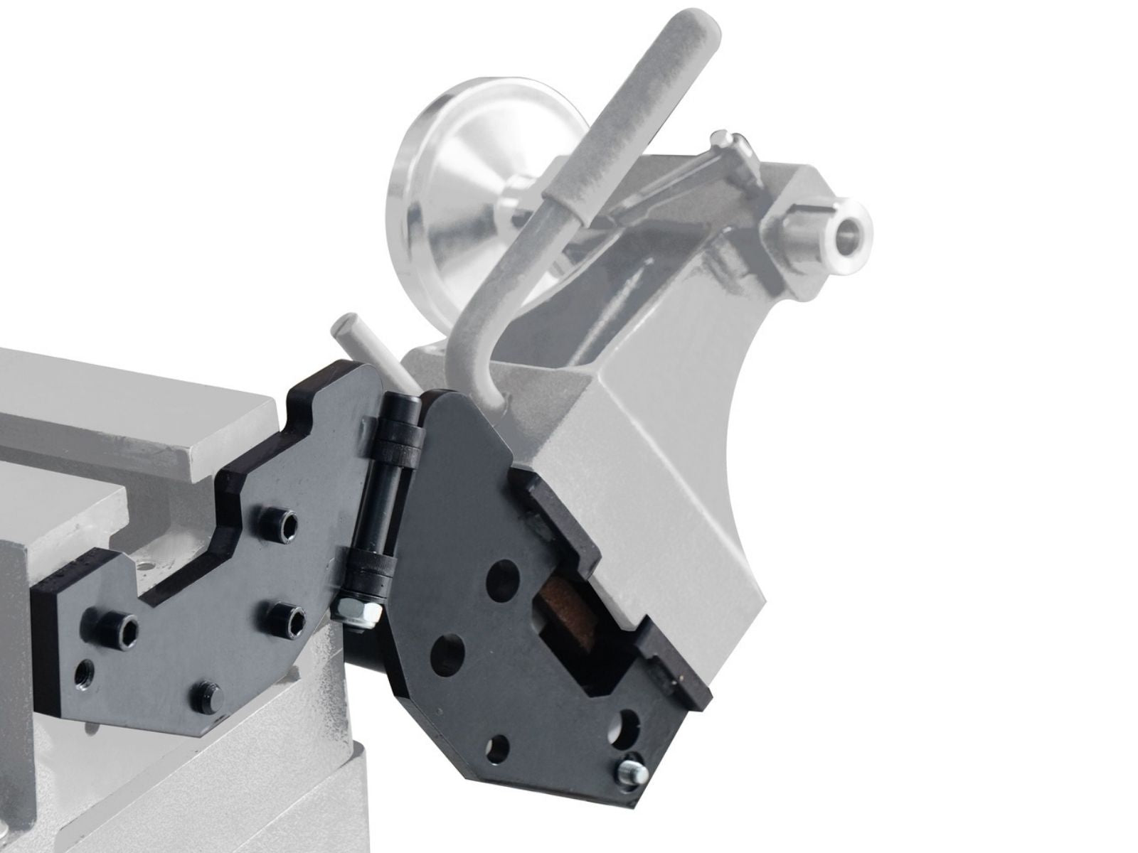 Der CARP 1624 Reitstock Swing Away macht den Umgang mit dem schweren Reitstock deiner CARP 1624 deutlich leichter. Statt den Reitstock komplett vom Bankbett zu heben, kannst du ihn mit dieser Schwenkhalterung einfach seitlich unter das Bett wegklappen – aus dem Arbeitsbereich raus, aber jederzeit schnell wieder verfügbar.