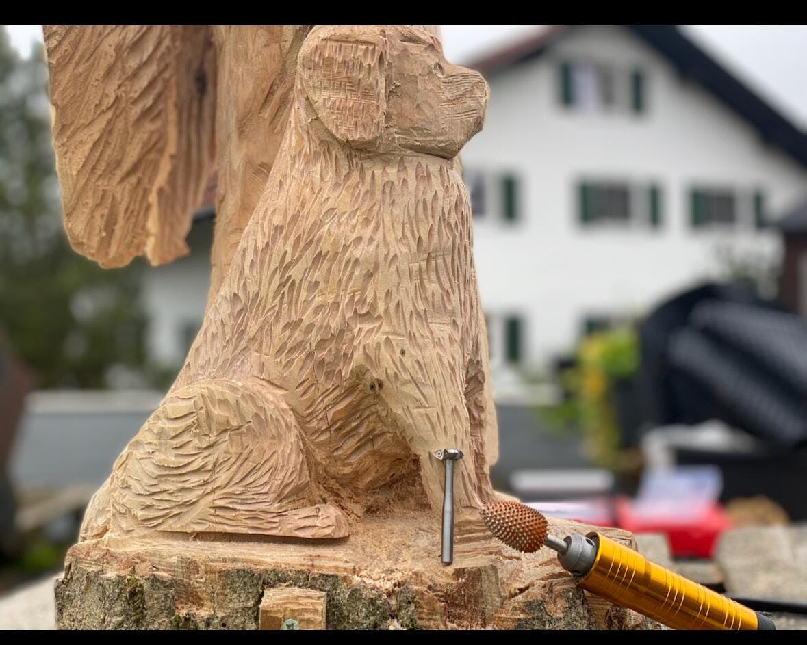 Der Dreieckfräser für Geradschleifer mit dreieckigen Hartmetall-Wendeschneidplatten eignet sich perfekt für die Strukturierung von Holzoberflächen und das Fräsen präziser V-Nuten. Durch die größere Leistung des Geradschleifers lassen sich tiefe, scharfe Kanten und detaillierte Strukturen noch effizienter umsetzen – ideal für Kettensägenschnitzer und Holzbildhauer.