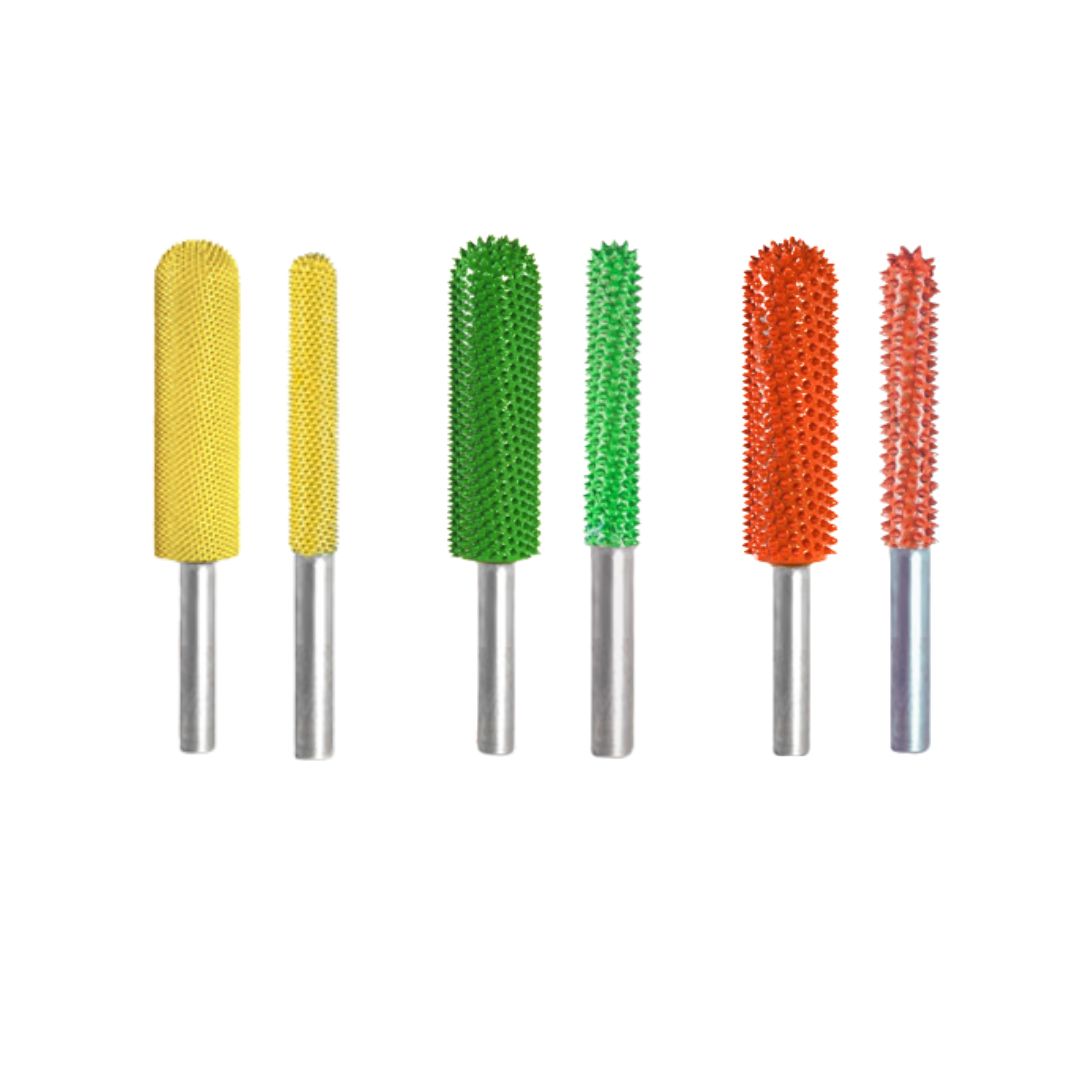 Wählen Sie den Raspelfräser mit der benötigten Körnung (fein, mittel, grob) und Kopf-Ø (13 mm, 6 mm)