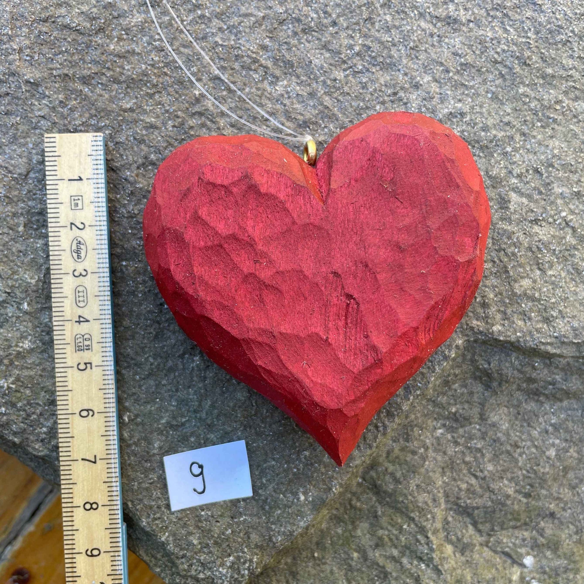 Fein von Hand geschnitzt und dunkelrot eingefärbt – ein schlankes, leichtes Herz mit klarer Kontur. Echte Erzgebirgs-Handarbeit, kein Serienprodukt. Die Oberfläche wurde mit Wachs behandelt.