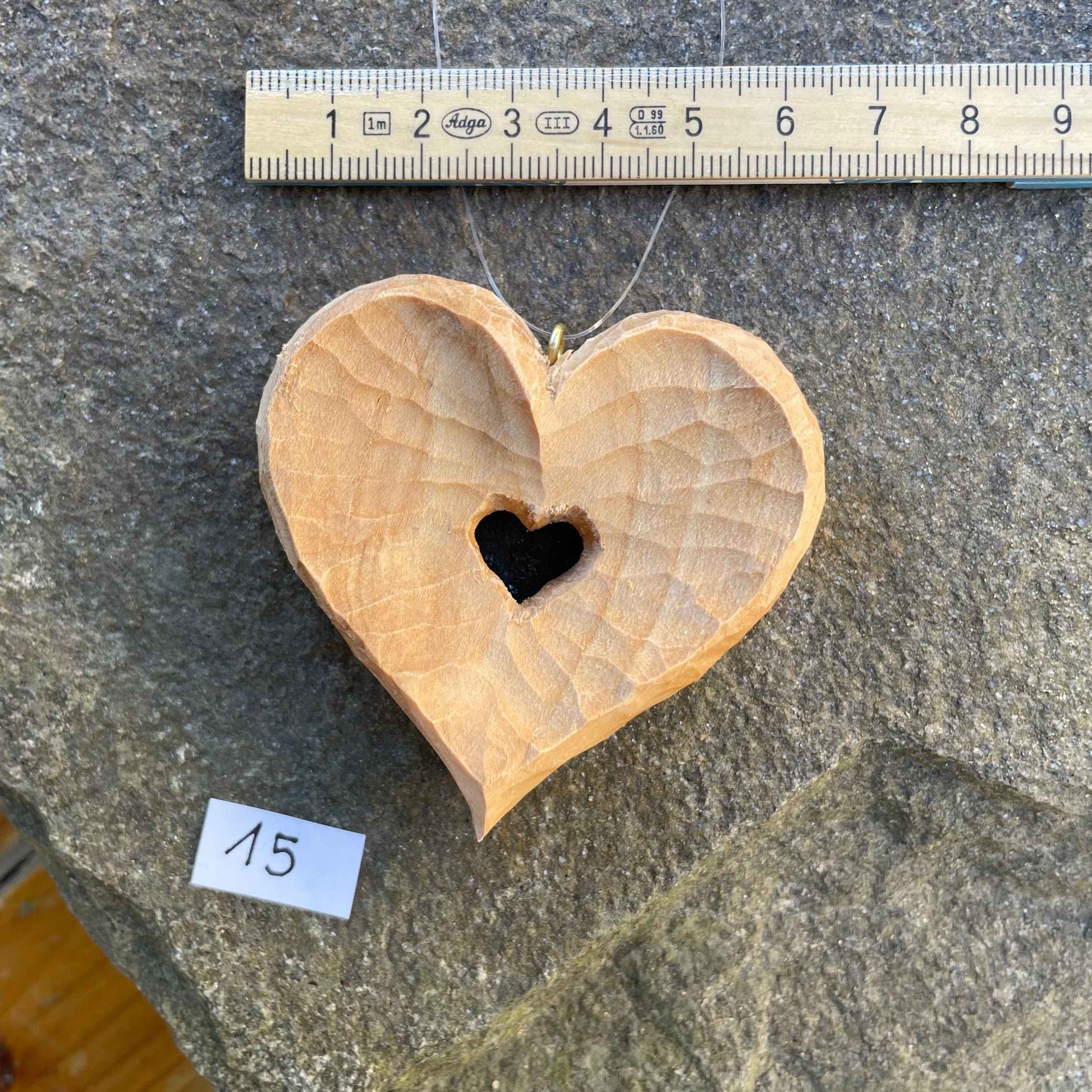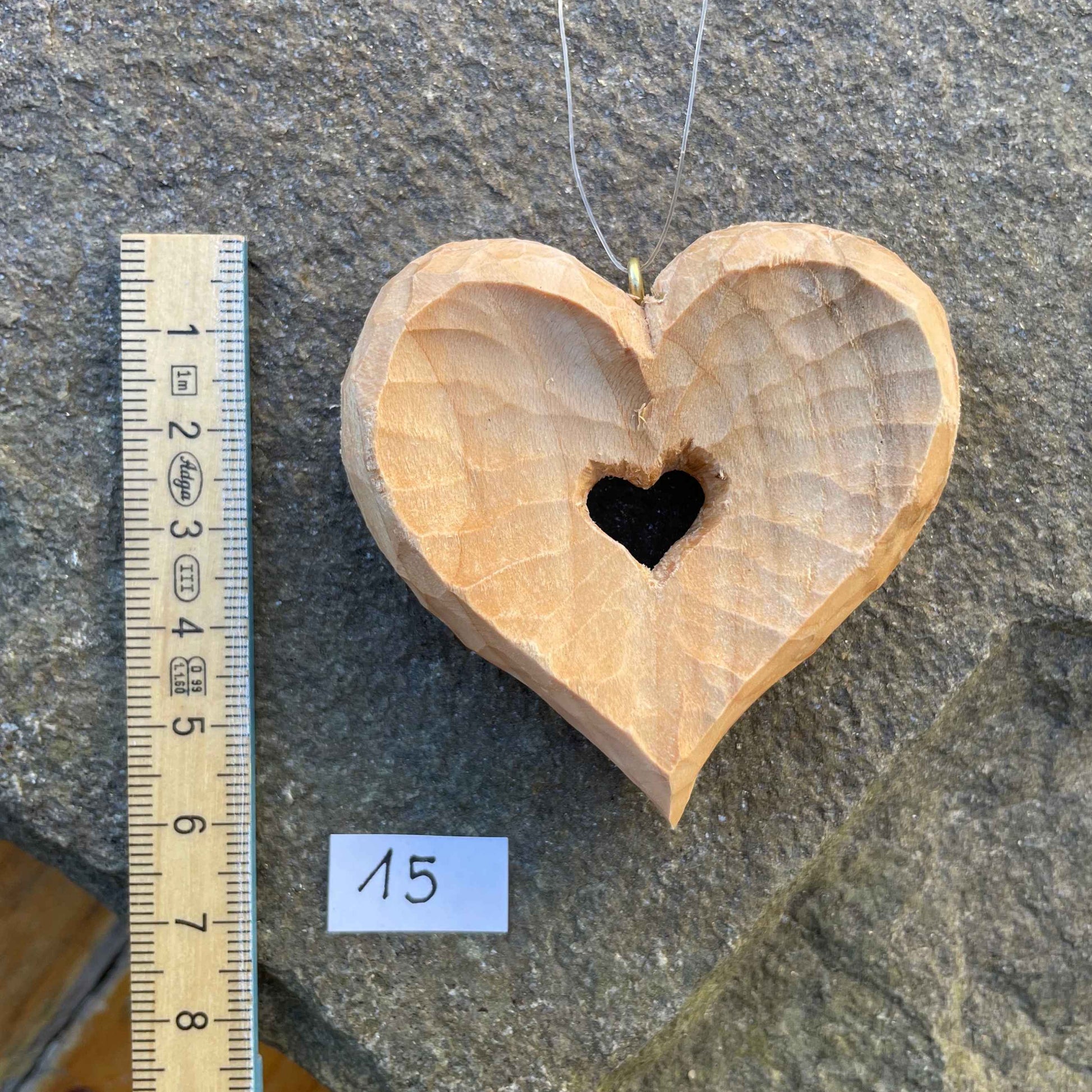- Ausführung: volles Herz mit innenliegendem, konkav geschnitztem Herz