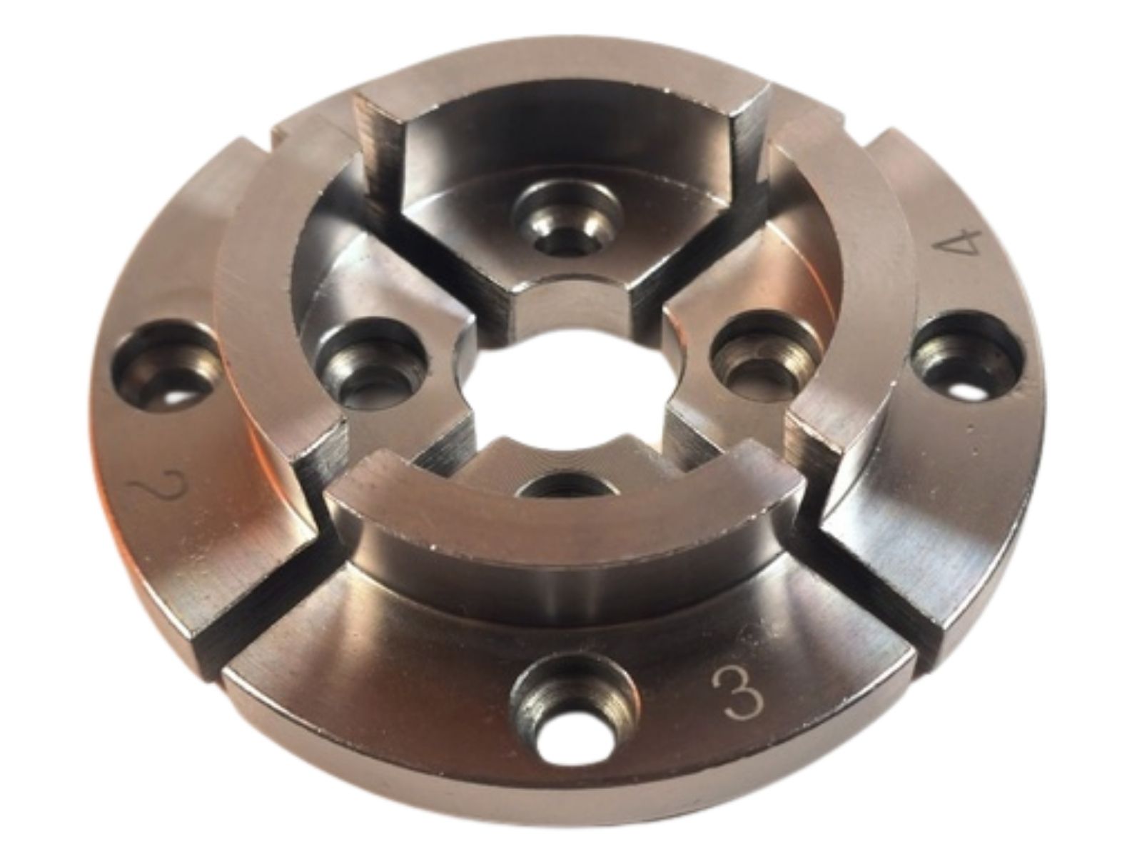 - Greifen (><): Zapfen/Ansatz wird von außen geklemmt. → Werkstück-Ø 44–62 mm
